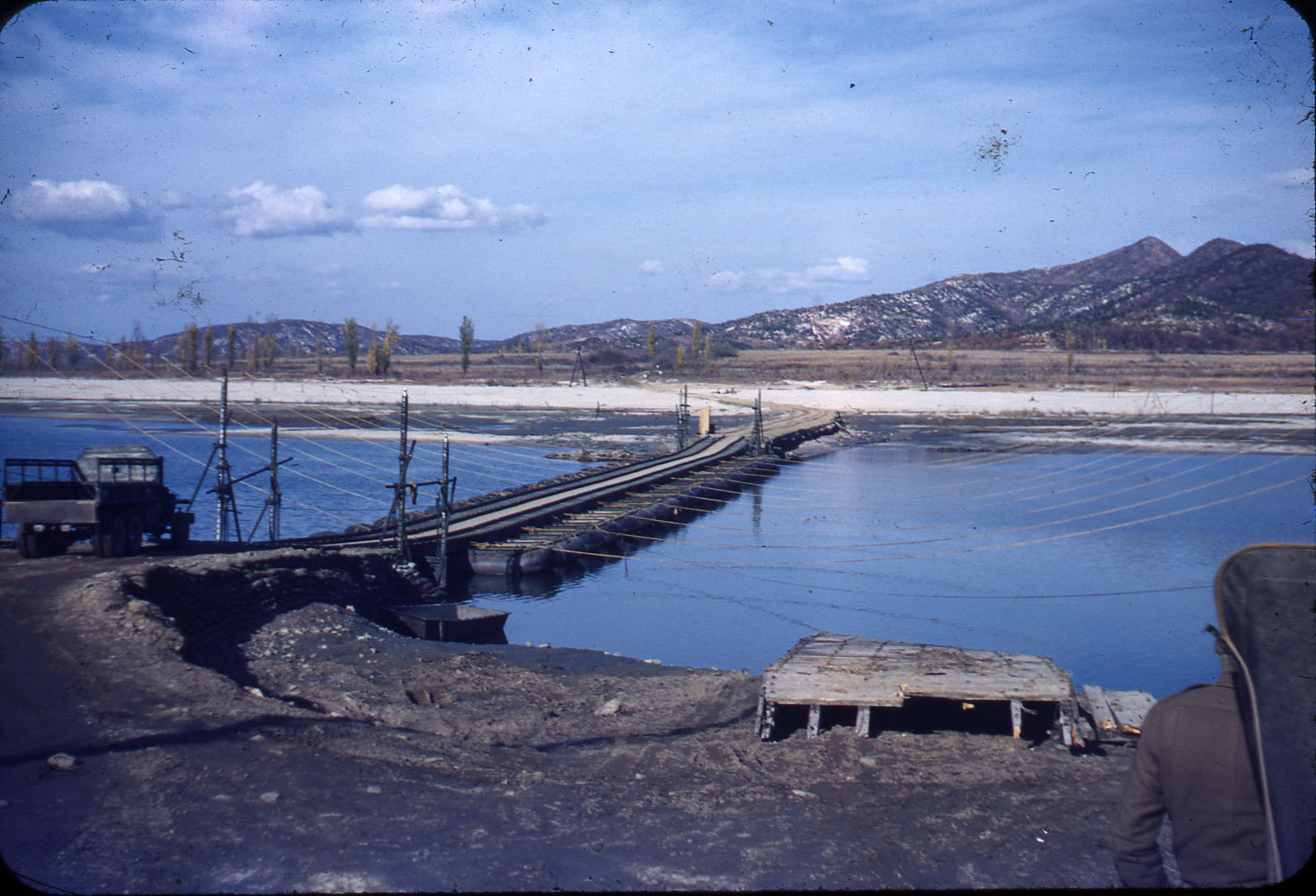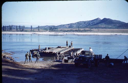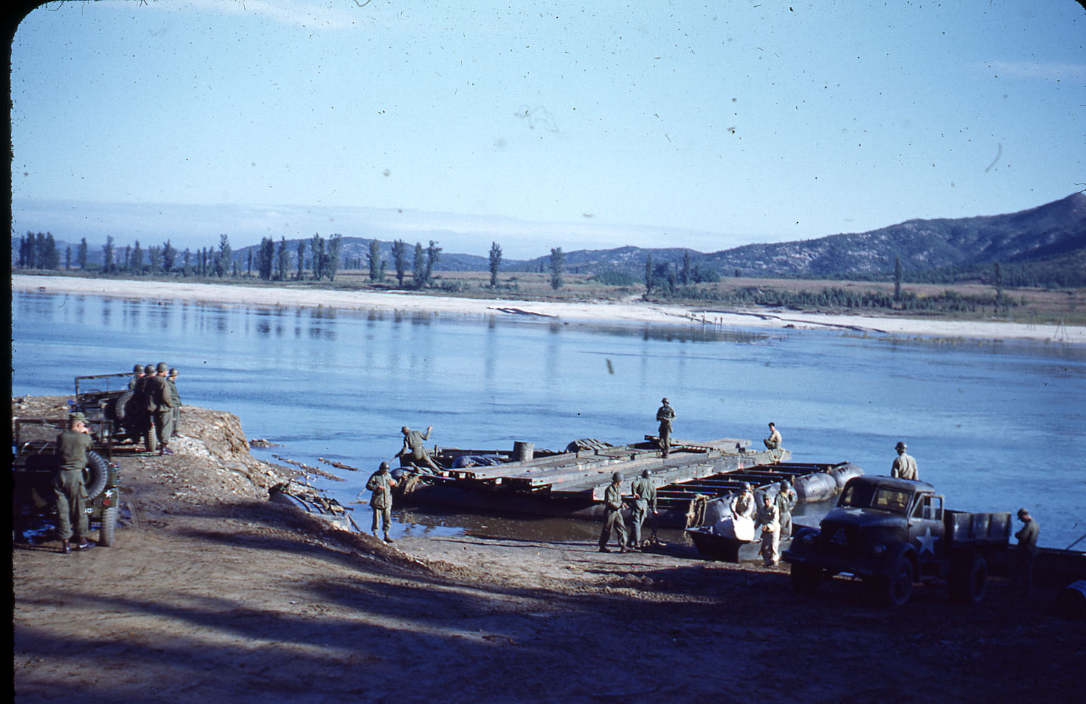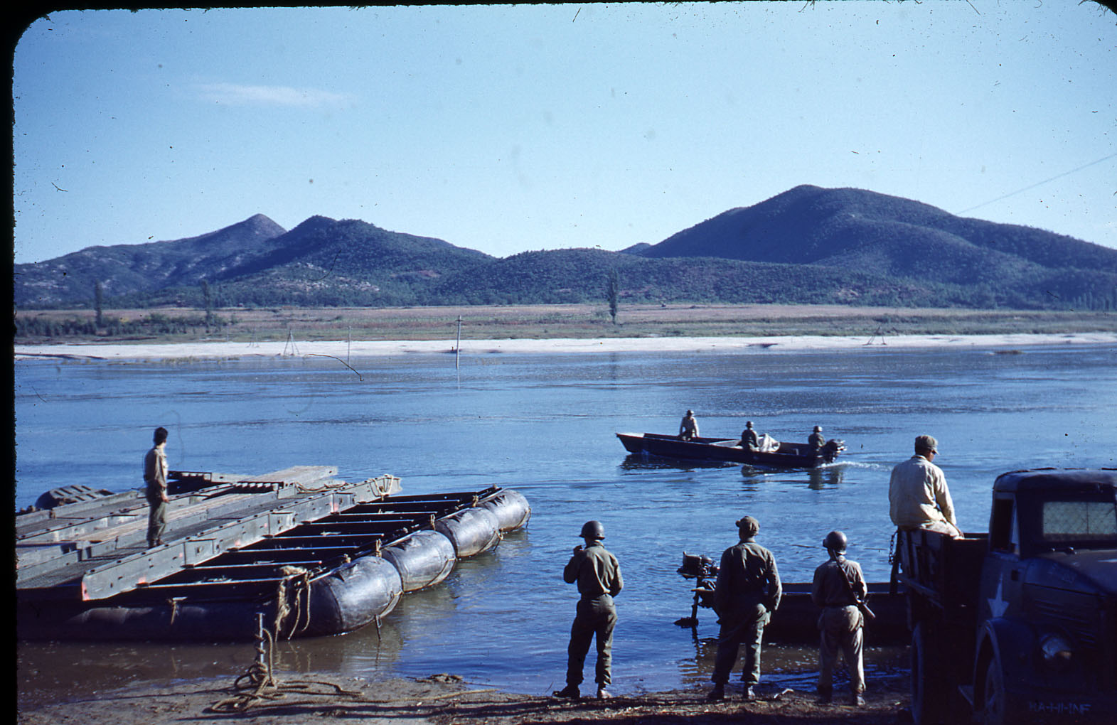 Rebuilding of Honker Pontoon Bridge over Imjin River. Late Summer